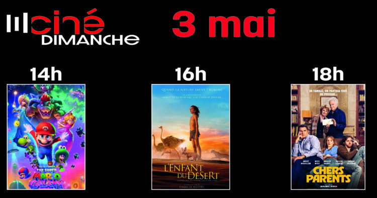 Cinéma CINE-DIMANCHE: 3 FILMS POUR TOUS LES GOÛTS ! Dates : Le 03 mai 2026 à 14 h Tarif : 5 € la séance, 4 € pour les moins de 16 ans